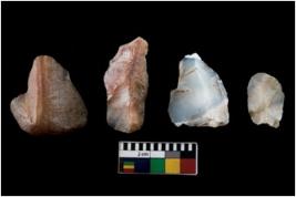 | Description / विवरण | There are n 4 ; worked utilized flakes; there are multidirectional irregular scar pattern on both dorsal and ventral face of the flakes. All are having sharp edges. |