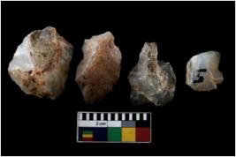 | Description / विवरण | There are n 4 ; worked utilized flakes; there are multidirectional irregular scar pattern on both dorsal and ventral face of the flakes. All are having sharp edges. |