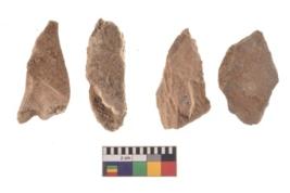 | Description / विवरण | There are n 4 utilized flakes. There are multi directional irregular scar pattern on both dorsal and ventral face of the flakes. two are tapering at one end and two have blunted edges. |