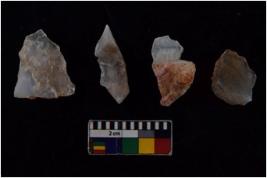 | Description / विवरण | There are n-4 of utilized flake cores. There are multidirectional irregular dominant scar pattern on both dorsal and ventral face of the cores. |