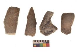 | Description / विवरण | There are n 4 utilized flakes. There are multi directional irregular scar pattern on both dorsal and ventral face of the flakes. two are blunted at one end and two have sharp edges. |