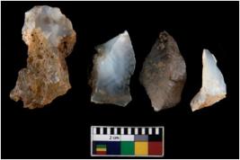 | Description / विवरण | There are n 4 ; worked utilized flakes; there are multidirectional irregular scar pattern on both dorsal and ventral face of the flakes. All are having sharp edges. |