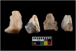 | Description / विवरण | There are n 4 ; worked utilized flakes; there are multidirectional irregular scar pattern on both dorsal and ventral face of the flakes. All are having sharp edges. |