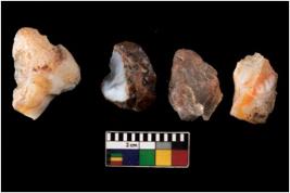 | Description / विवरण | There are n 4 ; worked utilized flakes; there are multidirectional irregular scar pattern on both dorsal and ventral face of the flakes. All are having sharp edges. |