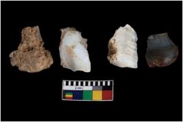 | Description / विवरण | There are n 4 ; worked utilized flakes; there are multidirectional irregular scar pattern on both dorsal and ventral face of the flakes. All are having sharp edges. |
