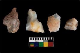 | Description / विवरण | There are n 4 ; worked utilized flakes; there are multidirectional irregular scar pattern on both dorsal and ventral face of the flakes. All are having sharp edges. |