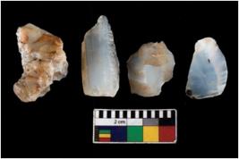 | Description / विवरण | There are n 4 ; worked utilized flakes; there are multidirectional irregular scar pattern on both dorsal and ventral face of the flakes. All are having sharp edges. |