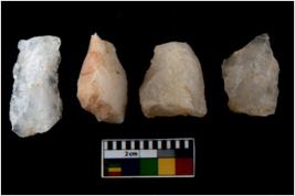 | Description / विवरण | Specimen of a cores with several broad fluted marks. The reverse bulb and platform can be seen. The flake scars are seen on all sides. |