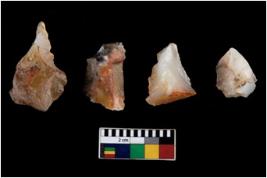 | Description / विवरण | There are n 4 ; worked utilized flakes; there are multidirectional irregular scar pattern on both dorsal and ventral face of the flakes. All are having sharp edges. |