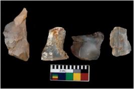 | Description / विवरण | There are n 4 ; worked utilized flakes; there are multidirectional irregular scar pattern on both dorsal and ventral face of the flakes. All are having sharp edges. |