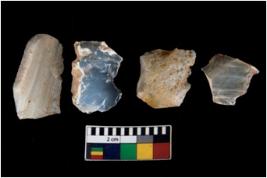 | Description / विवरण | There are n 4 ; worked utilized flakes; there are multidirectional irregular scar pattern on both dorsal and ventral face of the flakes. All are having sharp edges. |