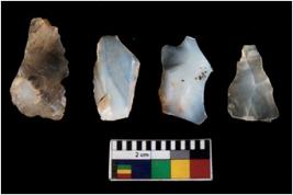 | Description / विवरण | There are n 4 ; worked utilized flakes; there are multidirectional irregular scar pattern on both dorsal and ventral face of the flakes. All are having sharp edges. |