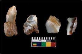 | Description / विवरण | There are n 4 ; worked utilized flakes; there are multidirectional irregular scar pattern on both dorsal and ventral face of the flakes. All are having sharp edges. |