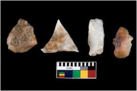 | Description / विवरण | There are n 4 ; worked utilized flakes; there are multidirectional irregular scar pattern on both dorsal and ventral face of the flakes. All are having sharp edges. |