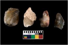 | Description / विवरण | There are n 4 ; worked utilized flakes; there are multidirectional irregular scar pattern on both dorsal and ventral face of the flakes. All are having sharp edges. |