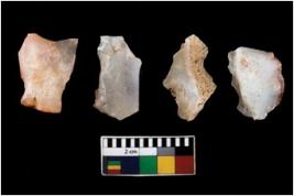 | Description / विवरण | There are n 4 ; worked utilized flakes; there are multidirectional irregular scar pattern on both dorsal and ventral face of the flakes. All are having sharp edges. |