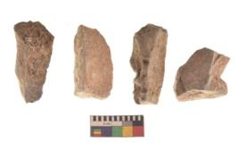 | Description / विवरण | There are n 4 utilized flakes. There are multi directional irregular scar pattern on both dorsal and ventral face of the flakes. three are tapering at one end and one has sharp edge. |