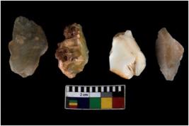 | Description / विवरण | There are n 4 ; worked utilized flakes; there are multidirectional irregular scar pattern on both dorsal and ventral face of the flakes. All are having sharp edges. |