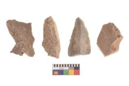 | Description / विवरण | There are n 4 utilized flakes. There are multi directional irregular scar pattern on both dorsal and ventral face of the flakes. three are tapering at one end and one has sharp edge. |