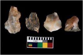 | Description / विवरण | There are n 4 ; worked utilized flakes; there are multidirectional irregular scar pattern on both dorsal and ventral face of the flakes. All are having sharp edges. |