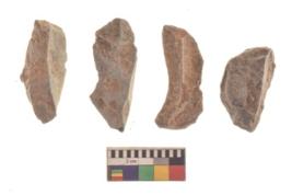 | Description / विवरण | There are n 4 utilized flakes. There are multi directional irregular scar pattern on both dorsal and ventral face of the flakes. three are tapering at one end and one has sharp edge. |