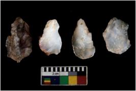 | Description / विवरण | There are n 4 ; worked utilized flakes; there are multidirectional irregular scar pattern on both dorsal and ventral face of the flakes. All are having sharp edges. |