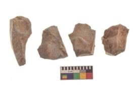 | Description / विवरण | There are n 4 utilized flakes. There are multi directional irregular scar pattern on both dorsal and ventral face of the flakes. three are tapering at one end and one has sharp edge. |