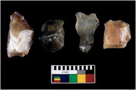 | Description / विवरण | There are n 4 ; worked utilized flakes; there are multidirectional irregular scar pattern on both dorsal and ventral face of the flakes. All are having sharp edges. |