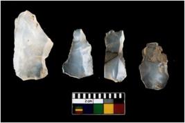 | Description / विवरण | There are n 4 ; worked utilized flakes; there are multidirectional irregular scar pattern on both dorsal and ventral face of the flakes. All are having sharp edges. |