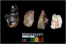 | Description / विवरण | There are n 4 ; worked utilized flakes; there are multidirectional irregular scar pattern on both dorsal and ventral face of the flakes. All are having sharp edges. |