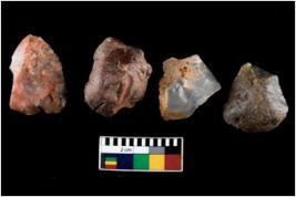 | Description / विवरण | There are n 4 ; worked utilized flakes; there are multidirectional irregular scar pattern on both dorsal and ventral face of the flakes. All are having sharp edges. |
