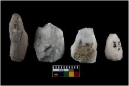 | Description / विवरण | Specimen of a cores with several broad fluted marks and some of them are tapering at one end. |