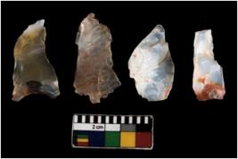 | Description / विवरण | There are n 4 ; worked utilized flakes; there are multidirectional irregular scar pattern on both dorsal and ventral face of the flakes. All are having sharp edges. |