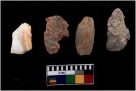 | Description / विवरण | There are n 4 of utilized worked cores and show multidirectional irregular scar pattern on both dorsal and ventral sides. |