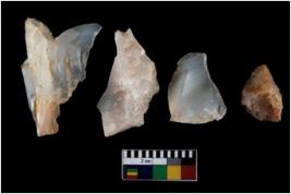 | Description / विवरण | There are n 4 ; worked utilized flakes; there are multidirectional irregular scar pattern on both dorsal and ventral face of the flakes. All are having sharp edges. |