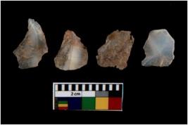 | Description / विवरण | There are n 4 utilized flake cores. There are multi directional irregular scar pattern on them. One is tapering at one end and three have blunted edges. |