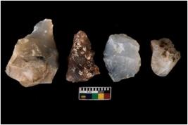| Description / विवरण | There are n 4 ; worked utilized flakes; there are multidirectional irregular scar pattern on both dorsal and ventral face of the flakes. All are having sharp edges. |