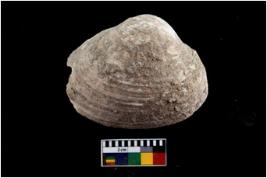 | Description / विवरण | Fragment of a bivalve shell with irregular shape. |