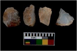| Description / विवरण | There are n 4 utilized flake cores. There are multi directional irregular scar pattern on them. One has sharp edge and three have blunted edges. |