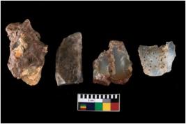 | Description / विवरण | There are n 4 ; worked utilized flakes; there are multidirectional irregular scar pattern on both dorsal and ventral face of the flakes. All are having sharp edges. |
