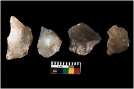 | Description / विवरण | There are n 4 ; worked utilized flakes; there are multidirectional irregular scar pattern on both dorsal and ventral face of the flakes. All are having sharp edges. |