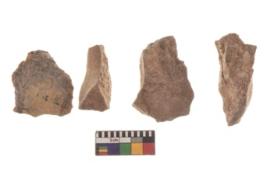 | Description / विवरण | There are n 4 utilized flakes. There are multi directional irregular scar pattern on both dorsal and ventral face of the flakes. three are tapering at one end and one has sharp edge. |