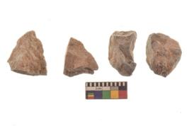 | Description / विवरण | There are n 4 utilized flakes. There are multi directional irregular scar pattern on both dorsal and ventral face of the flakes. three are tapering at one end and one has sharp edge. |