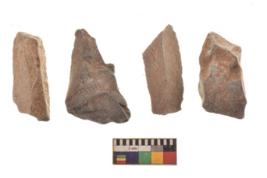 | Description / विवरण | There are n 4 utilized flakes. There are multi directional irregular scar pattern on both dorsal and ventral face of the flakes. two are tapering at one end and two have sharp edges. |