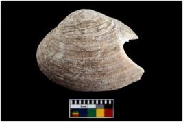 | Description / विवरण | Fragment of a bivalve shell with irregular shape. |