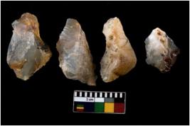 | Description / विवरण | There are n 4 ; worked utilized flakes; there are multidirectional irregular scar pattern on both dorsal and ventral face of the flakes. All are having sharp edges. |