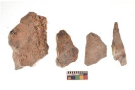 | Description / विवरण | There are n 4 utilized flakes. There are multi directional irregular scar pattern on both dorsal and ventral face of the flakes. three are tapering at one end and one has pointed edge. |