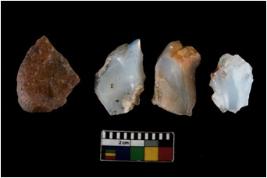 | Description / विवरण | There are n 4 ; worked utilized flakes; there are multidirectional irregular scar pattern on both dorsal and ventral face of the flakes. All are having sharp edges. |