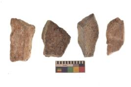 | Description / विवरण | There are n 4 utilized flakes. There are multi directional irregular scar pattern on both dorsal and ventral face of the flakes. three are tapering at one end and one has sharp edge. |