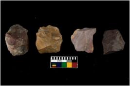 | Description / विवरण | Specimen of a cores with several broad fluted marks and some of them are tapering at one end. |